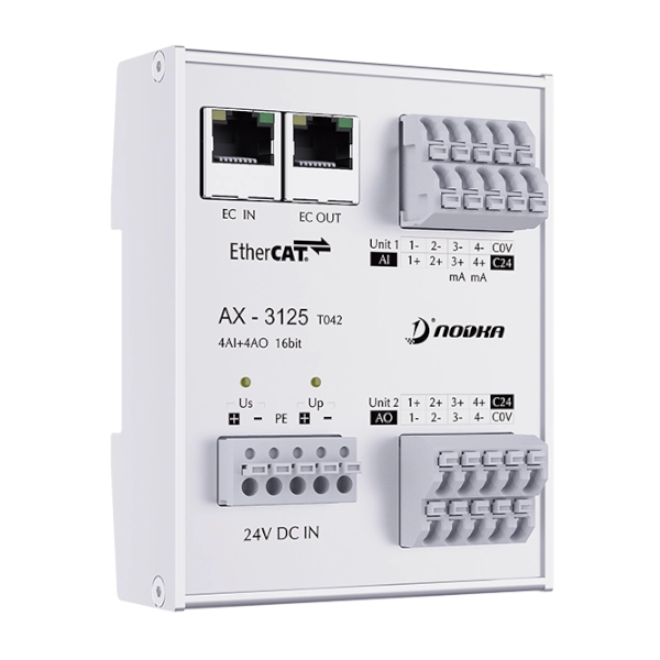 4-channel analog output: Voltage 0V–10V, 16-bit, single-ended